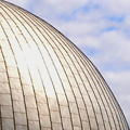 hall clad in ornamental brick. A mighty chandelier of sorts floats high over