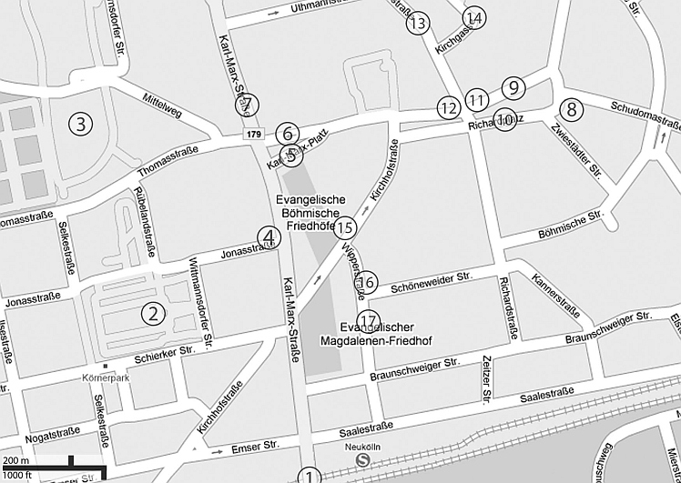 5. Böhmischer Gottesacker | Dating from the eighteenth century and still in use today, this cemetery served the area’s Bohemian refugees | Karl-Marx-Platz 10